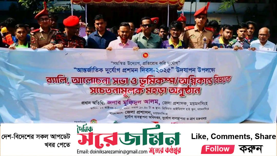 দুর্যোগ প্রস্তুতি ও সচেতনতা: ময়মনসিংহে আন্তর্জাতিক দুর্যোগ প্রশমন দিবস ২০২৫ যথাযথ মর্যাদায় উদযাপন