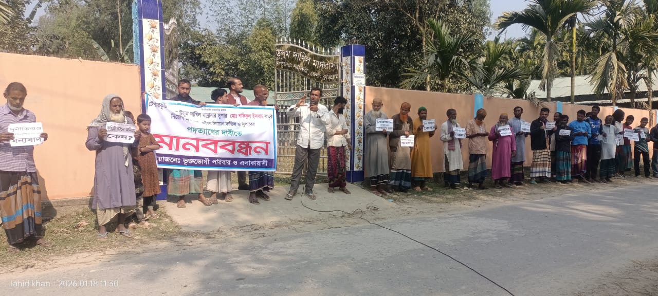 নাগেশ্বরীতে মাদ্রাসা সুপারের বিরুদ্ধে নিয়োগ বাণিজ্য ও জালিয়াতির অভিযোগ, মানববন্ধন