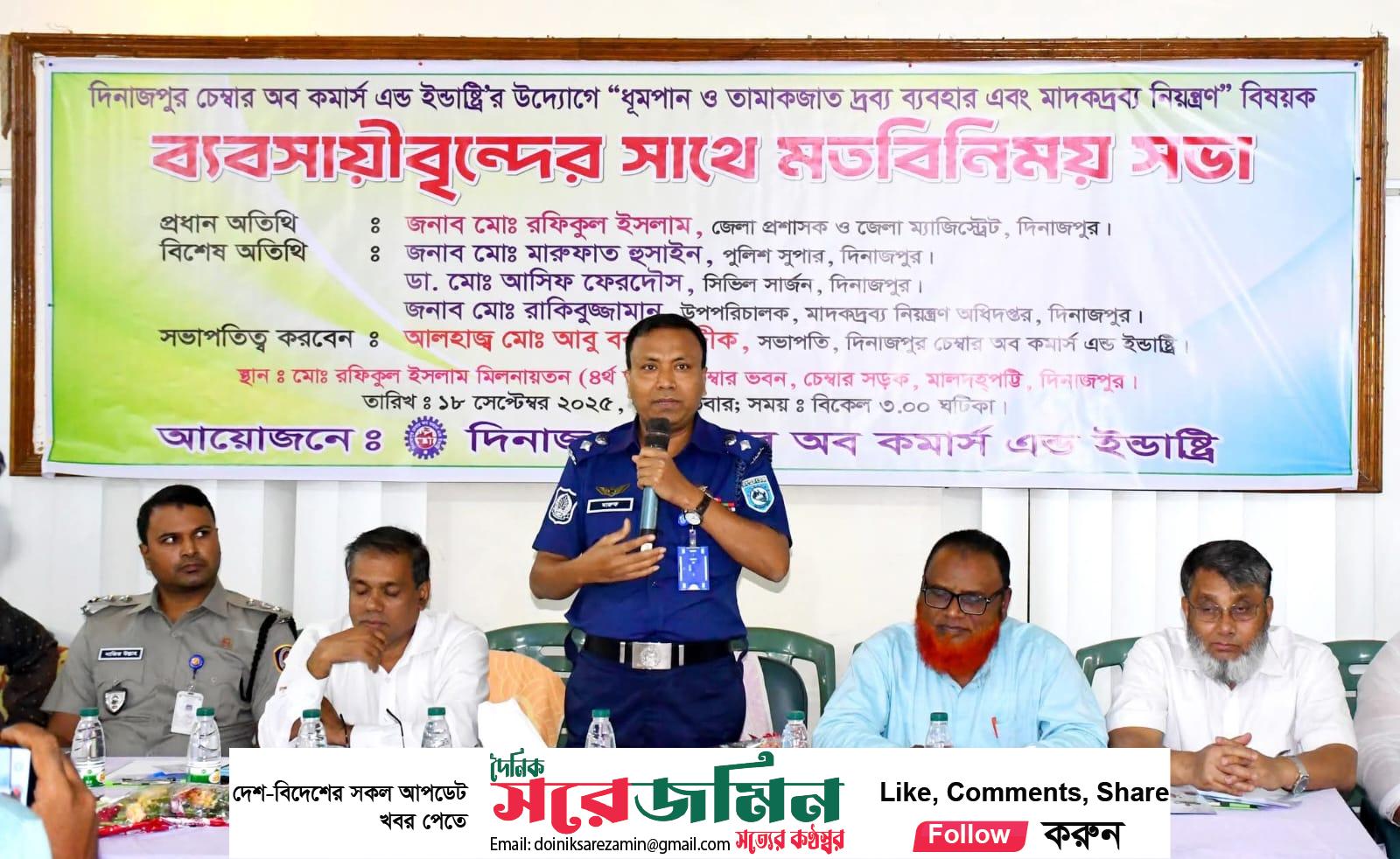 দিনাজপুর চেম্বারের উদ্যোগে ধূমপান ও মাদকবিরোধী মতবিনিময় সভা অনুষ্ঠিত