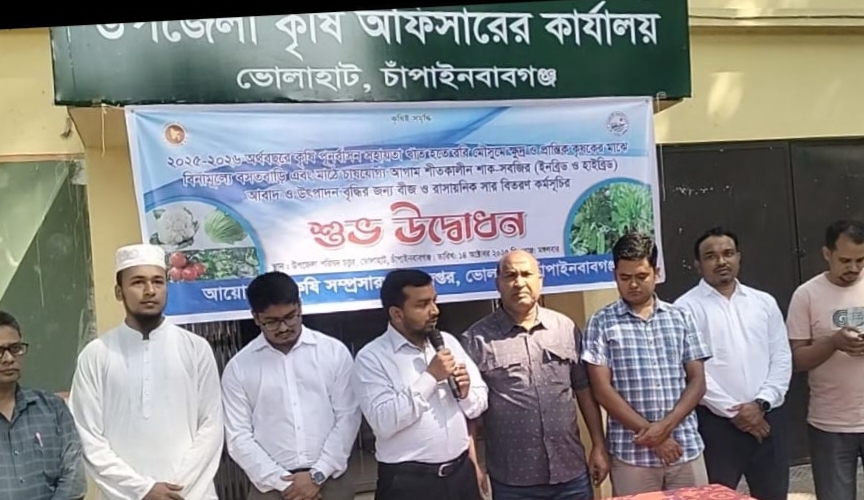 এম. এস. আই শরীফ, ভোলাহাট (চাঁপাইনবাবগঞ্জ) প্রতিনিধিঃ চাঁপাইনবাবগঞ্জের ভোলাহাটে ২০২৫-২৬ অর্থবছরে রবি মৌসুমে ক্ষুদ্র ও প্রান্তিক কৃষকদের মাঝে বিনামূল্যে বীজ