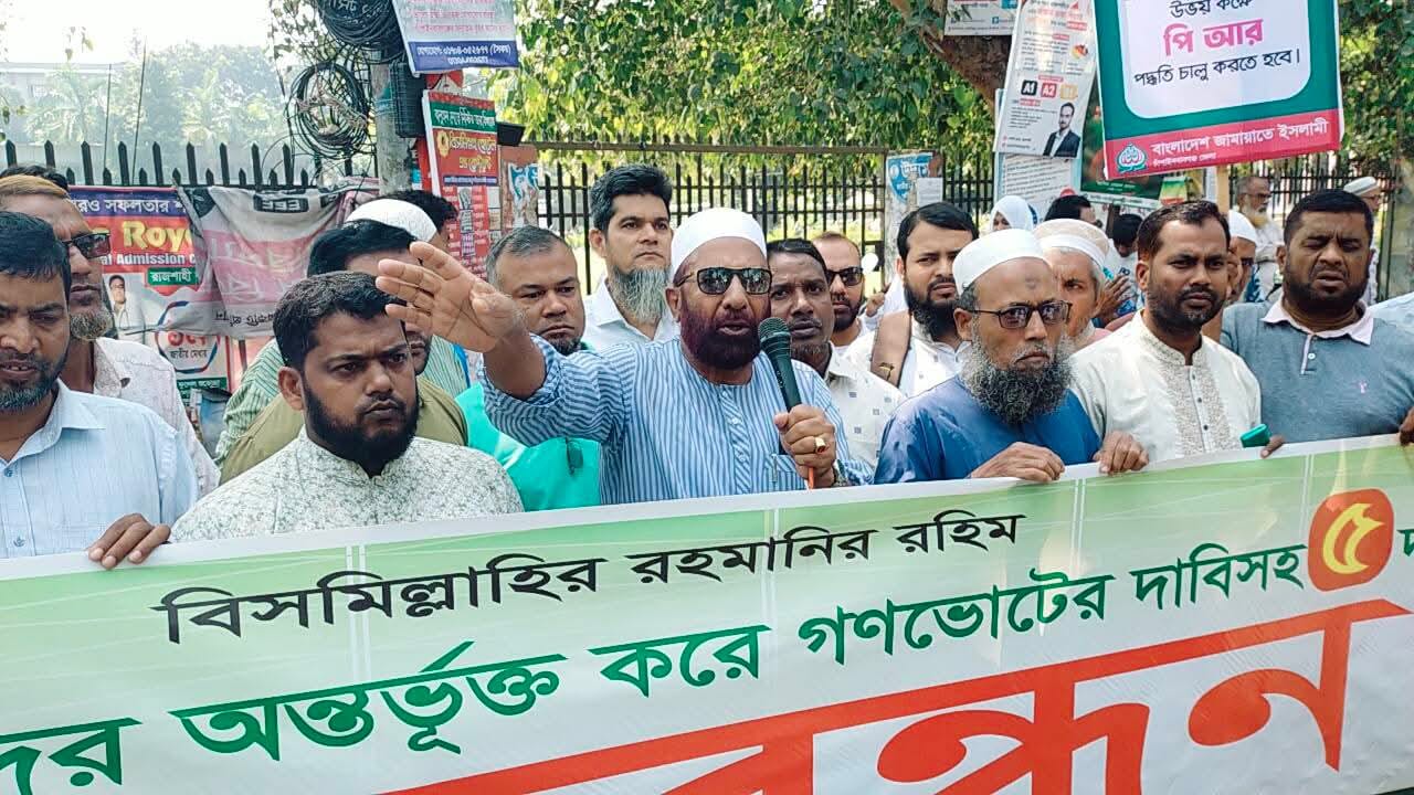 রাজনৈতিক কর্মসূচি: চাঁপাইনবাবগঞ্জে গণভোটের দাবিসহ ৫ দফা বাস্তবায়নের দাবিতে জামায়াতে ইসলামীর মানববন্ধন অনুষ্ঠিত
