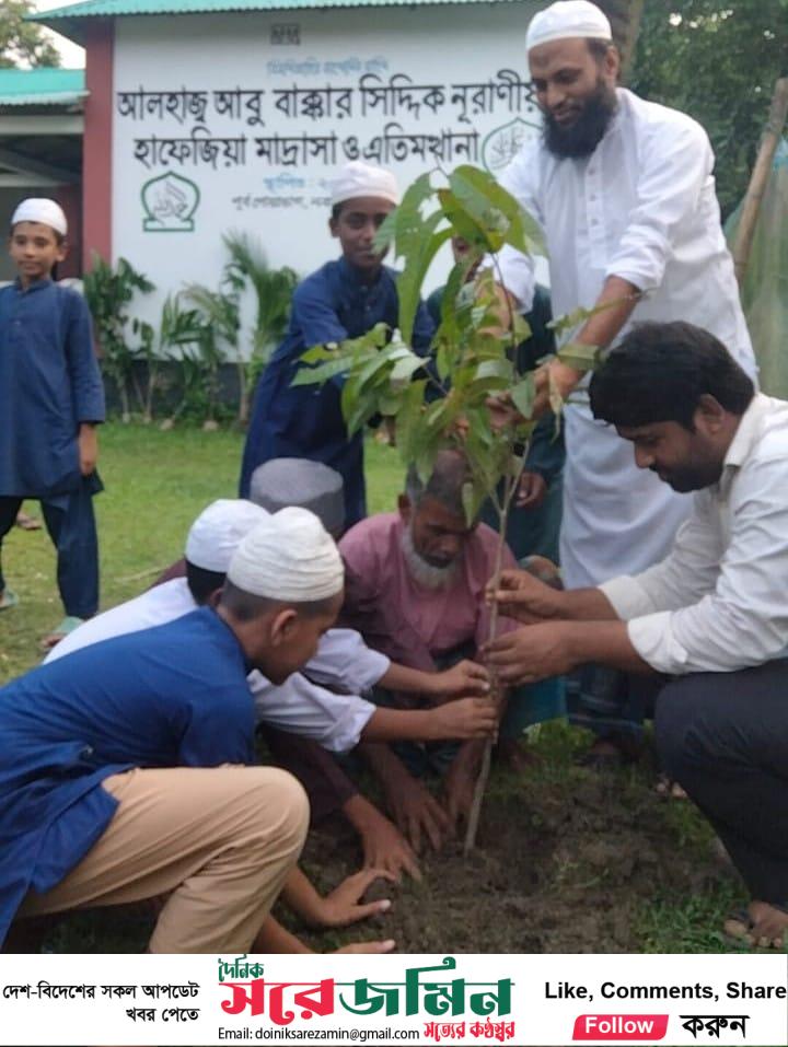 পরিবেশ ও সেবার অনন্য উদ্যোগ: নকলায় হাফেজিয়া মাদ্রাসা-এতিমখানা মাঠে ফলজ গাছের চারা রোপন